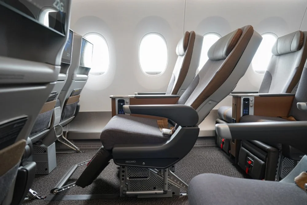 Ta klasa oferuje większą przestrzeń na nogi, szerszy fotel i lepsze posiłki niż standardowa ekonomia, idealna dla osób chcących wyższego komfortu bez wysokiej ceny klasy biznesowej.